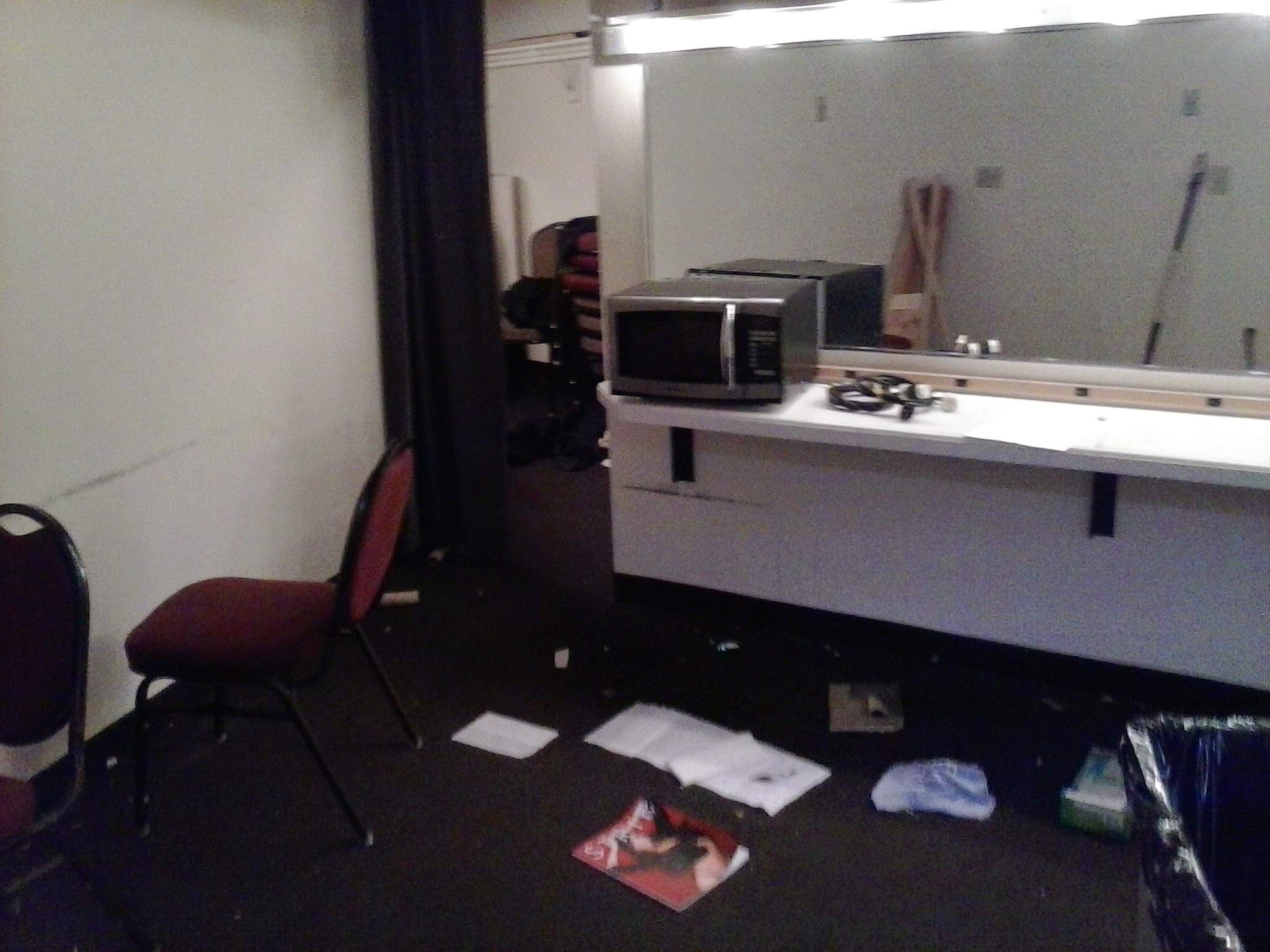 We wandered backstage in the Starlite Showroom and the comedy club. These areas were torn apart. The Starlite Showroom dressing room had a going away message taped to the wall.
